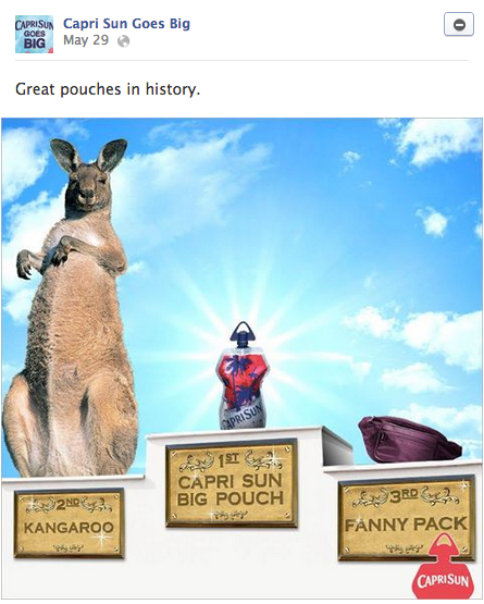 Capri Sun introduced a bigger pouch for bigger kids. As the biggest kid of them all, I was thrilled to have the chance to create the social campaign associated with this new product. We made dozens of posts, a few of my favorites below.